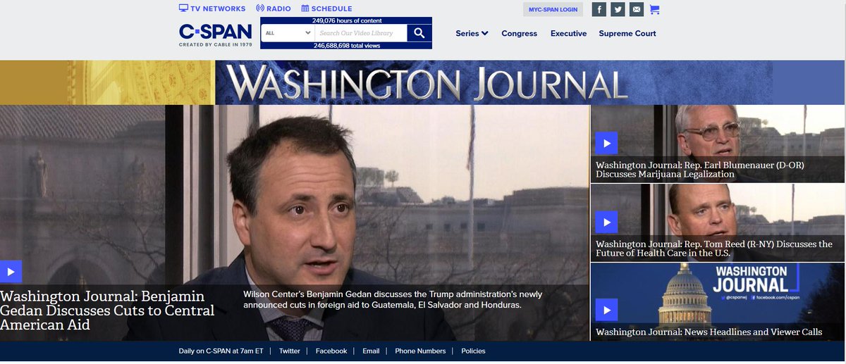 The @LATAMProg team was at @cspan this morning to participate in @cspanwj’s discussion of President Trump’s threats to cut aid to Central America. @TheWilsonCenter #Honduras #Guatemala #ElSalvadorpic.twitter.com/bfTLGDviTP
