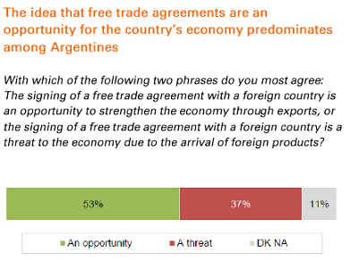 Our new #ArgentinaPulse survey found that a majority of Argentines (53%) believe free trade agreements are an opportunity for the country. #Argentina @Poliarquia_