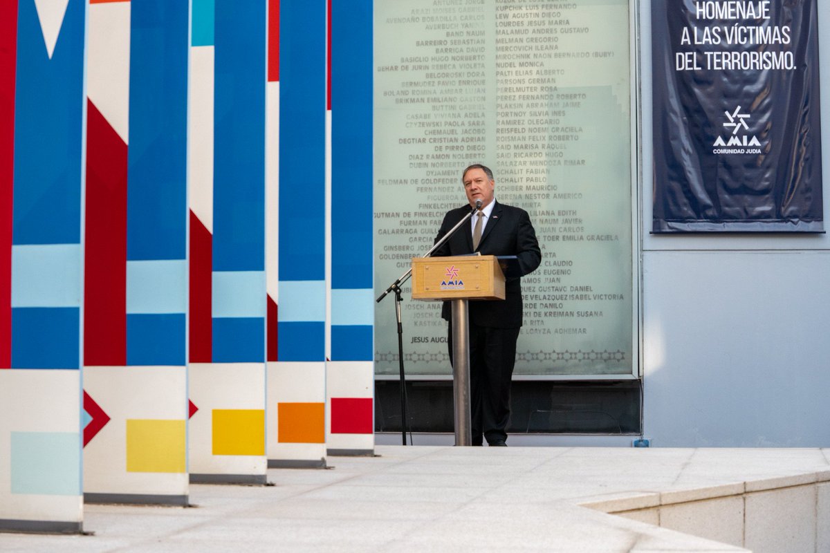 In Buenos Aires today, @StateDept's @SecPompeo spoke about the 25th anniversary of the bombing of the AMIA Jewish community center in #Argentina. @USEmbArgentina 1/pic.twitter.com/MN8hUuVF6L