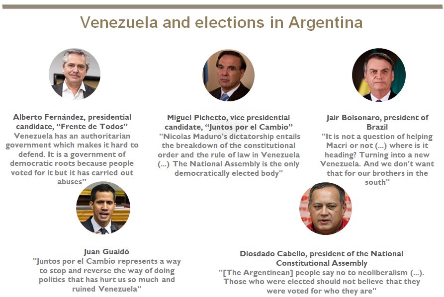 Great overview from @DireLegislativo of the role of #Venezuela in #Argentina’s election, where Peronists are called upon to justify the kirchners’ ties to chavismo, and the government (and Bolsonaro) warn unsuccessfully that the opposition would produce similar economic ruin.pic.twitter.com/vkGdD2Q7qC