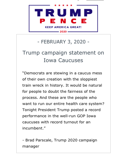 The Trump campaign is jumping right in, questioning if Dems can operate a government run health care system if they can't run a caucus.pic.twitter.com/TuEKmZgkEt