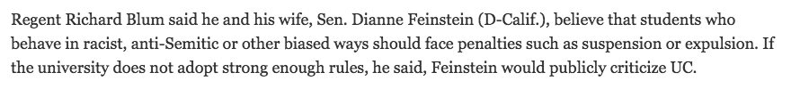 @AriCohn@Popehat@SenFeinstein If a Jewish and Muslim student each accuses the other of hate speech, who should be expelled? -