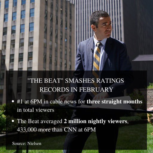 So if you ever watch The Beat, thank you for making it: The most watched cable news show three months in a row at 6pm!