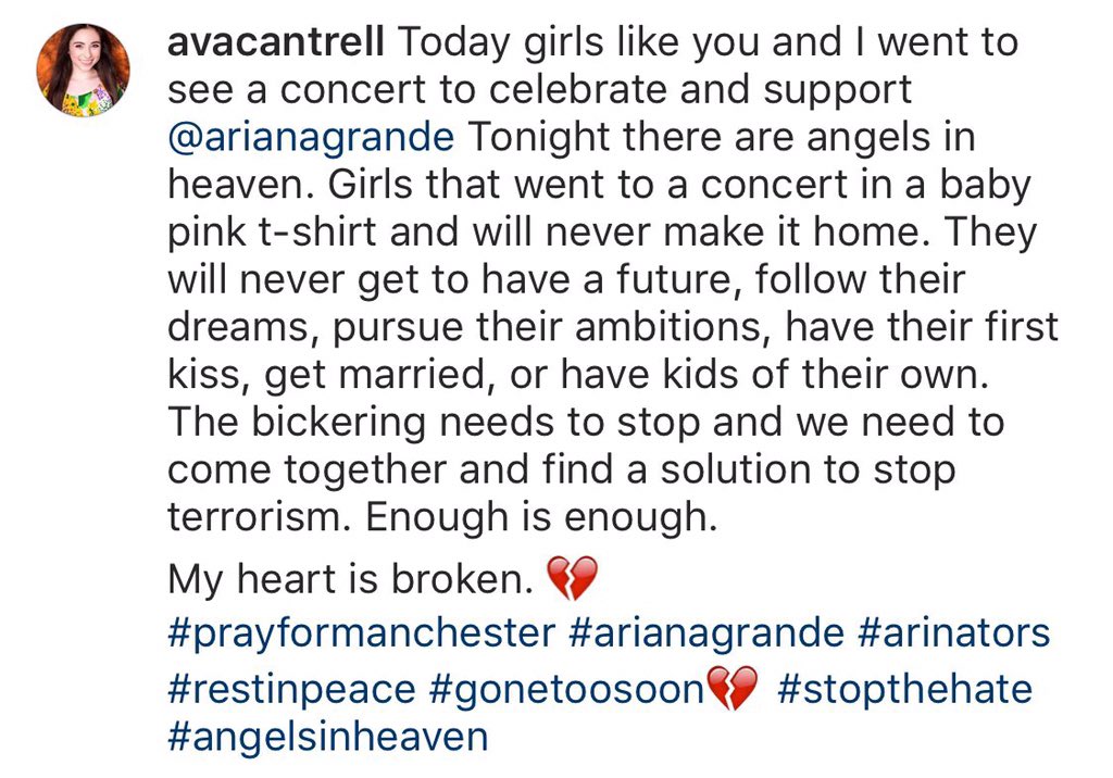It's not your fault. It's terrorists that hate children that did that. This changed my life. We lost our sisters today.pic.twitter.com/h79ib7UhU6