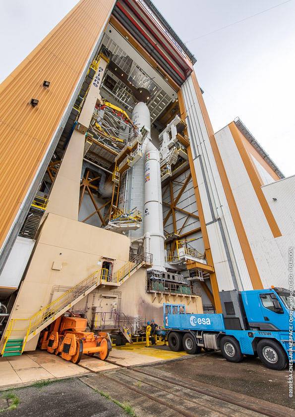 .@ariane5 #VA251 a été déplacée hier jusqu'à son pas de tir en vue du lancement prévu ce soir. Elle embarque à son bord les satellites #Konnect d'@Eutelsat_SA et GSAT-30 d'@isro. Retrouvez toutes les infos sur ce vol dans le kit de lancement 👉 https://www.arianespace.com/wp-content/uploads/2020/01/VA251-launchkit-FR.pdf … pic.twitter.com/YqAhoUK9vv