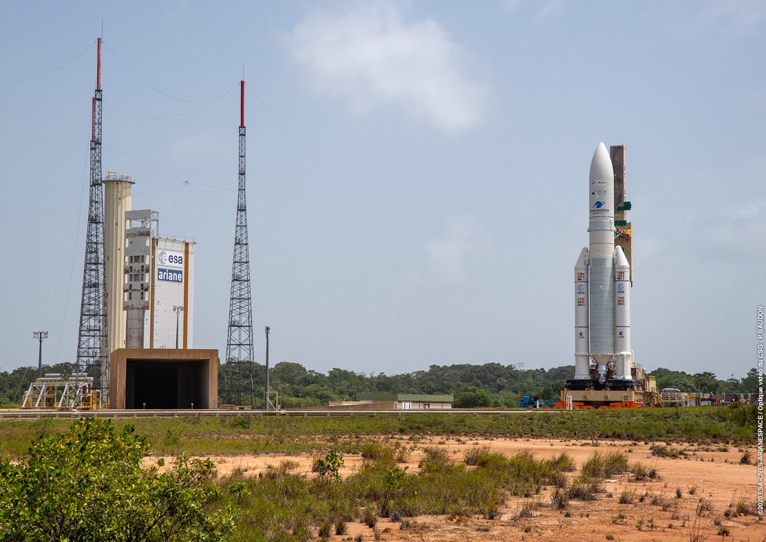 An Ariane 5 has rolled out to the pad ahead of tomorrow’s launch. At 5:18 PM (EST) Ariane 5 will carry two communications satellites into orbit. #space #europe #ariane #satellitepic.twitter.com/Q5Gx2VJaqH