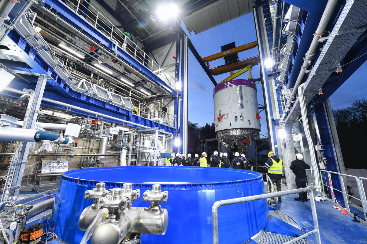The @esa #Ariane6 upper stage (manufactured by @arianegroup in Bremen) has been installed on the test bench at the @DLR_en Center in #Lampoldshausen 🇩🇪. The upper stage will now undergo a test campaign to simulate all aspects of flight. 📸 © DLR CC-BY 3.0 & ESA - S. Corvajapic.twitter.com/I5JP3D9Gc5