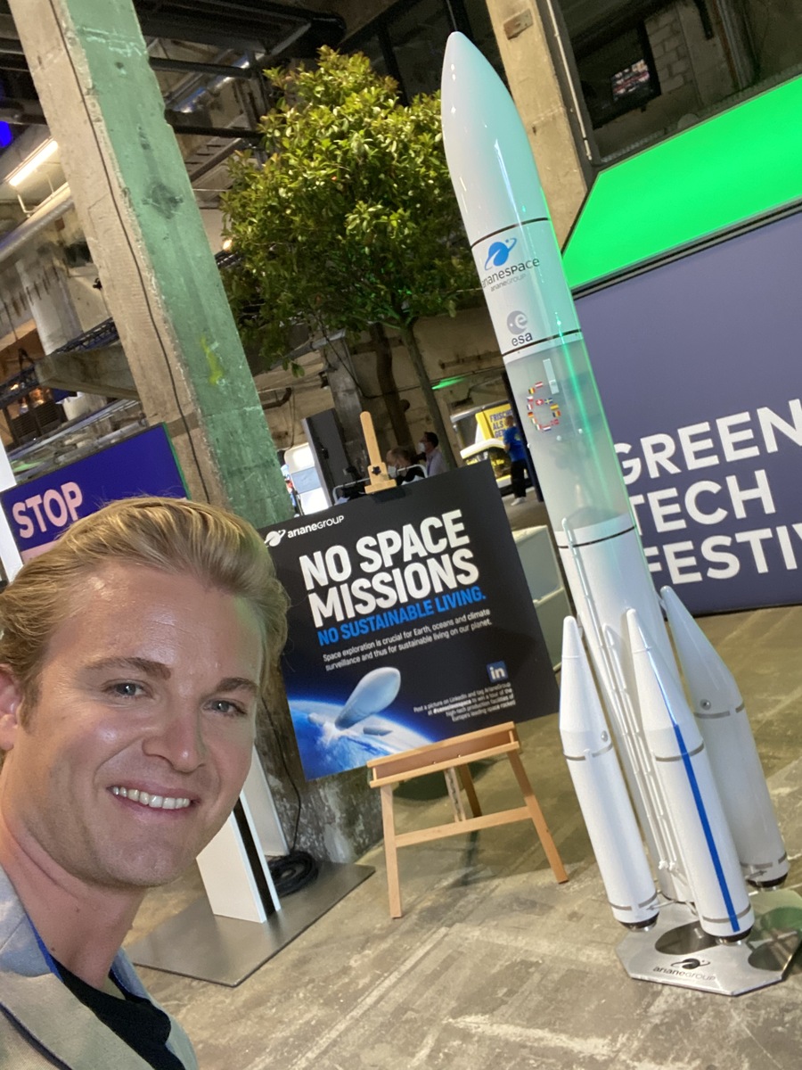 🏎 Hello @NicoRosberg! The German-Finnish world champion auto racing driver swung by the stands again when he visited #Ariane6 at the @greentech_festl! By the way, can you guess how many Formula 1s it would take to match Ariane 6's speed? 🚀#ArianeGroup #GreentechFestivalpic.twitter.com/IUQSgvkVpq