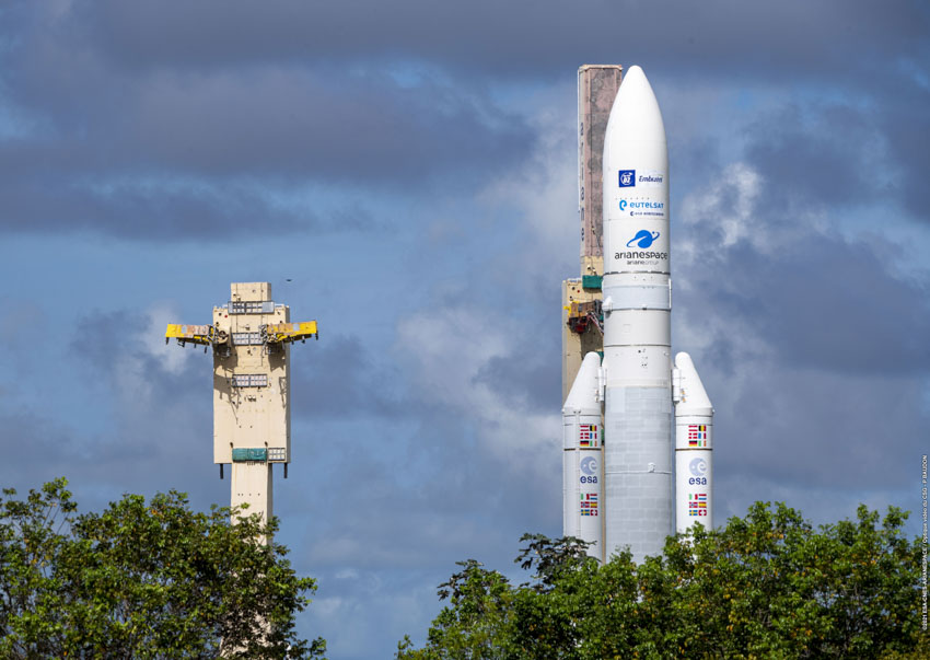 Hier, il y en a une autre qui est arrivée sur sa zone de lancement... Et à priori, son décollage n'est pas retardé ! #Ariane5 au rendez-vous ! 📷ESA/CNES/Arianespace/CSG/P.Baudon pic.twitter.com/W2EvaFbjg9