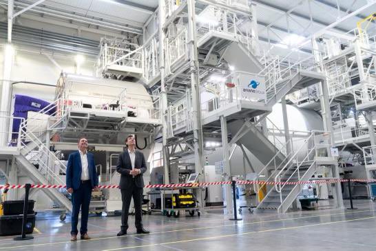A stunning view of the first #Ariane6 main stage in is final assembly line in Les Mureaux. It was great  to talk to those involved in this ambitious project I know it's a long race, the finish line requires intensive efforts. Thanks to  @ArianeGroup and @CNES We will make it !pic.twitter.com/fvaapvFnGD