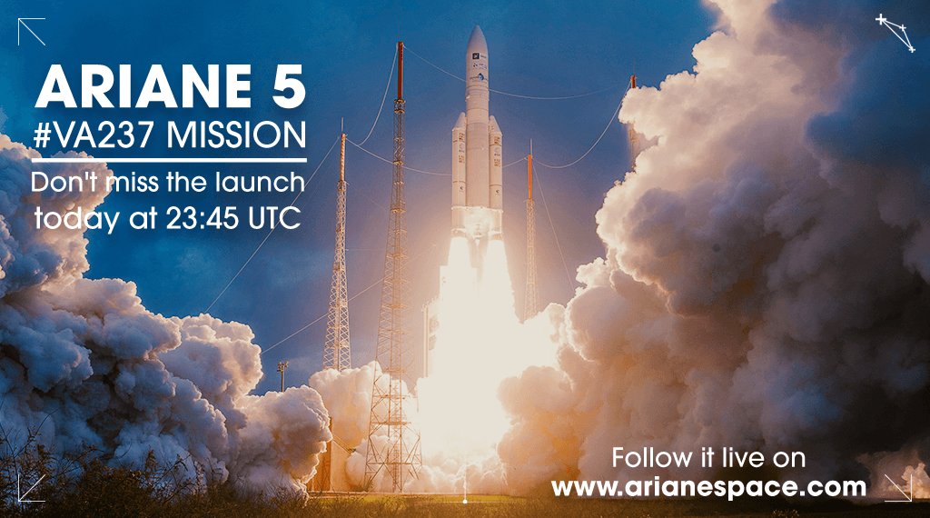 Get ready for tonight's Ariane 5 mission! Follow the live video on http://www.arianespace.com pic.twitter.com/iPf3hxDUDZ
