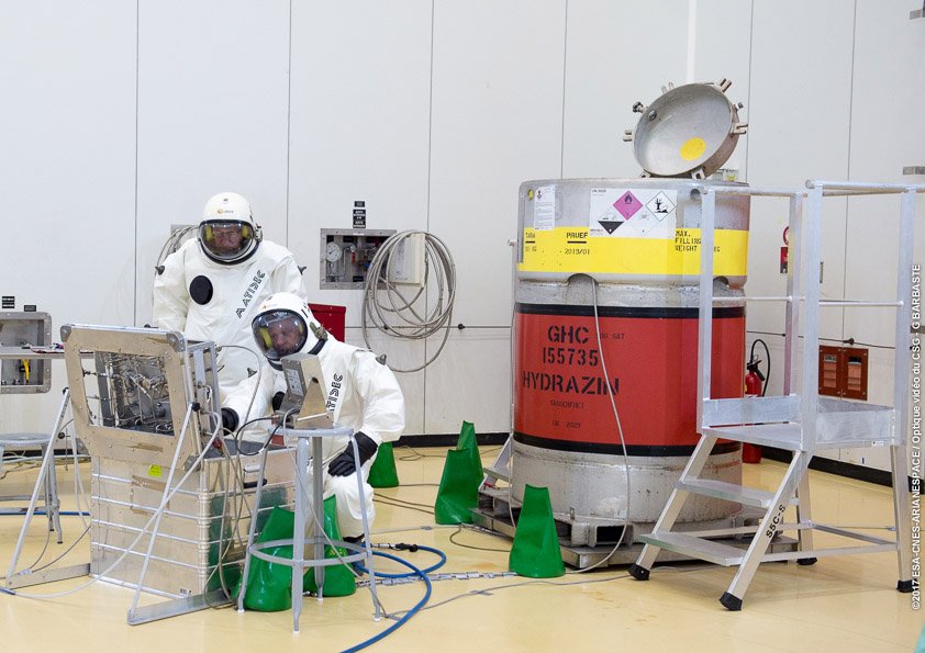 Our fuel technicians are hard at work preparing for the launch of V240 on December 12. Their protective suits make them look a bit like astronauts, no?pic.twitter.com/xEecOhz82s