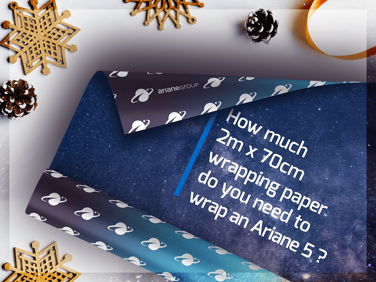 Merry Christmas! Can you guess how many rolls of wrapping paper you would need to gift-wrap an Ariane 5 ECA? Give us your answer and you could win a bunch of Ariane goodies. Rules of the contest here: http://bit.ly/ChristmasAriane pic.twitter.com/BevIiEF91J