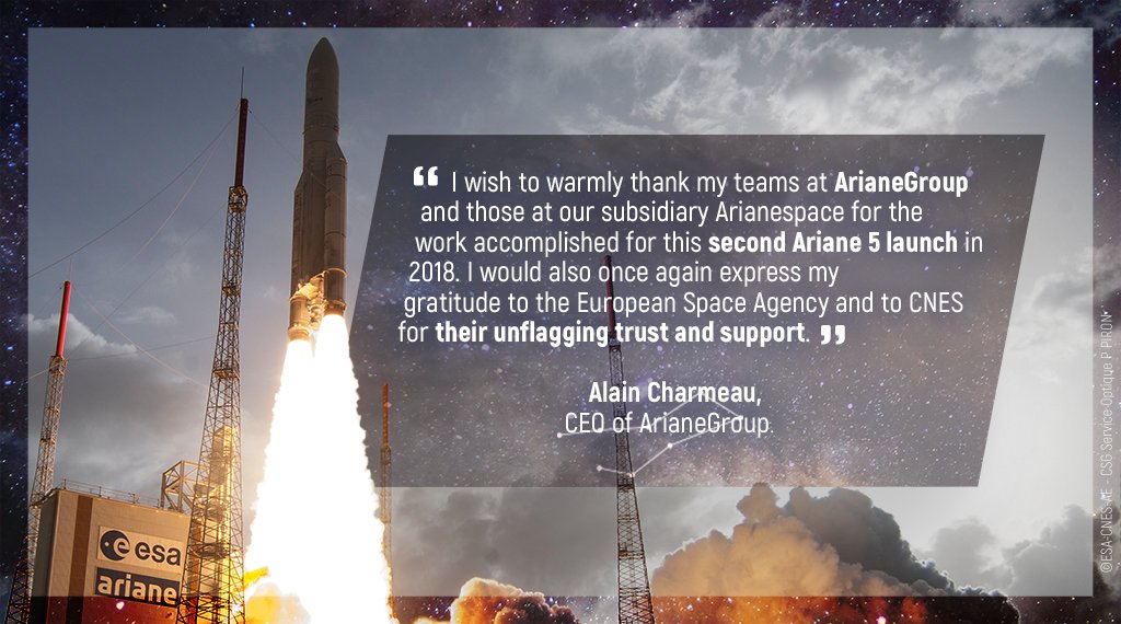 Mission success for Ariane 5! Congratulations to our teams! 🙌🏻 See the press release here: https://www.ariane.group/en/news/mission-success-for-ariane-5/ …pic.twitter.com/QitSfeXBAs