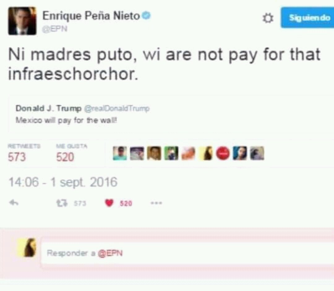 El tibio Peña No quiere tocar al troglodita Trump ni con el pétalo de una rosa.Calderón regañó al congreso de gorila Bush.
