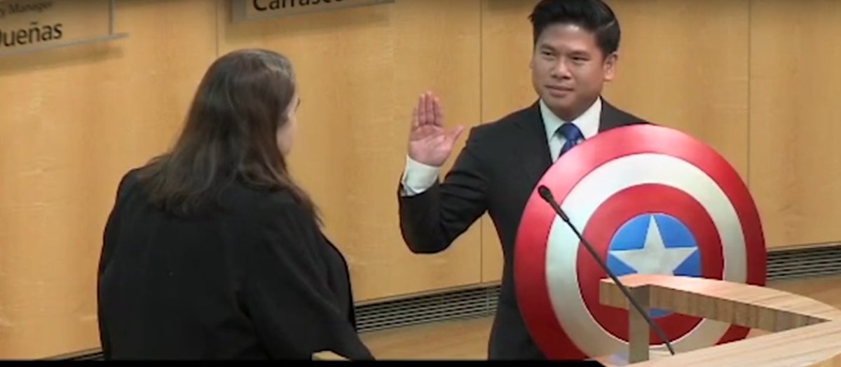 ‘Capitán América’ jura como concejal en Estados Unidos (Video) http://ow.ly/bOUU308yfWu pic.twitter.com/8tNMu5BEIS