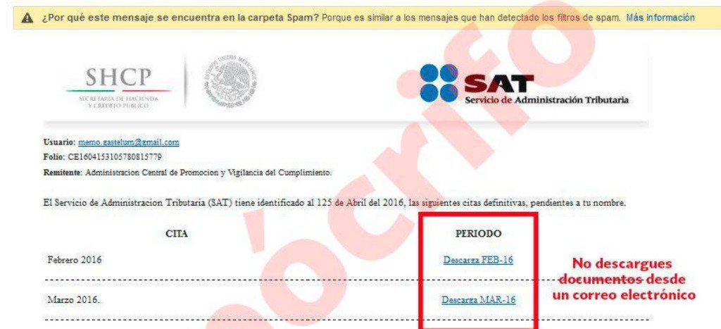 Yo recibí uno idéntico, me sacó de onda, luego ví el remitente y busqué en la página del SAT para reportar, ya estaba en la lista.