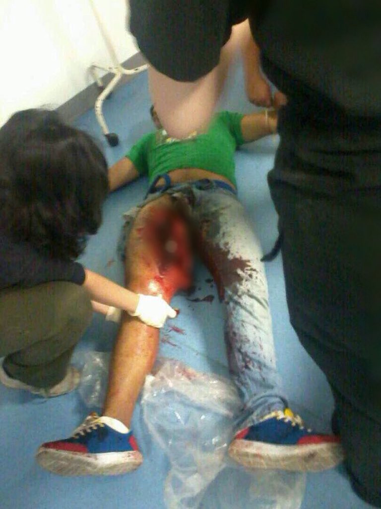 .joven venezolano herido en la pierna. Informa por favor.