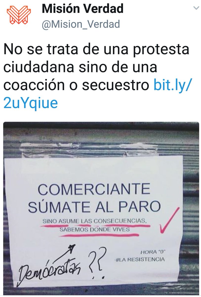 Estas son las amenazas de la oposición para los comerciantes que no se sumen al paro.pic.twitter.com/SuoNfDJuAM