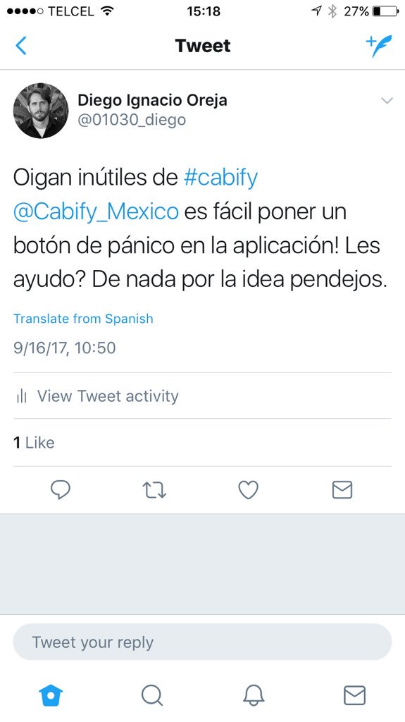 @Cabify_Mexico avtivos. Aguas no se pueden confiarThanks. Twitter will use this to make your timeline better. UndoUndo