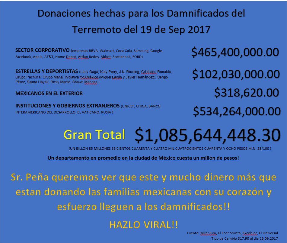 JAJAJA... SHCP SE APROPIA DE TODOS LOS DONATIVOS PARA LA RECONSTRUCCIÓN Y POR OTRO LADO, ¿LE COBRAN A LOS MEXICANOS MEDIANTE CRÉDITOS? JAJA!