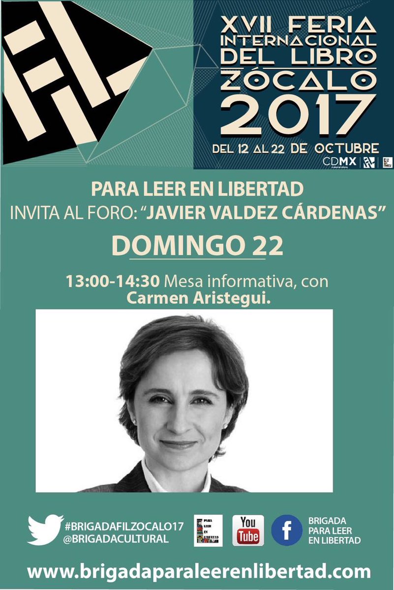 #EnVivo desde la @FILZocalo, Carmen #Aristegui en el Foro Javier Valdez Cárdenas. Síguelo aquí: http://bit.ly/2yJnKRX pic.twitter.com/29rp5le2Mx