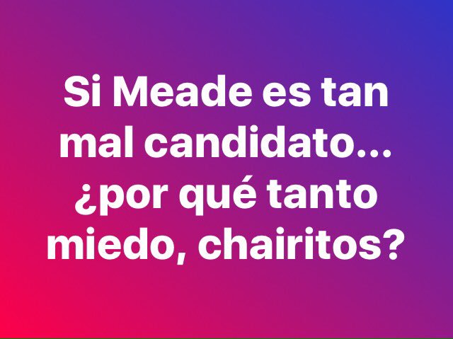 meade representa la continuidad de la corrupción, de la violencia, del saqueo de nuestro patrimonio, de la ignorancia que se oculta tras doctorados. AMLO representa el miedo de fecal y peña a responder por sus delitos.