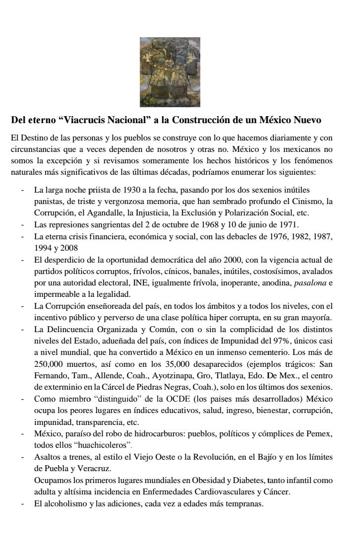 Del "Viacrucis Nacional", a Plan de Construcción de un México Nuevo! Revertir el Estado de Emergencia en que estamos metidos. completo, PDF. https://1drv.ms/b/s!At6zwxMcTOlYiXdhovkrWOsWGzna …pic.twitter.com/qyFf0uNUlo