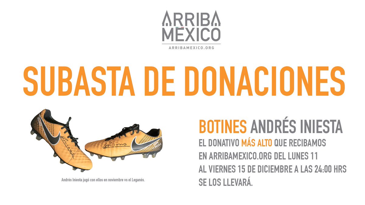 @AristeguiOnline Buenos días! Nos ayudarías a difundir la subasta de donaciones de unos botines oficiales autografiados de @andresiniesta8 que estamos haciendo para reconstruir México??