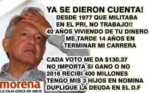 Jaja el vjt AMLOCO es la corrupción el viejo pri solo será un cínico vividor oportunista q engaña y bien a los tarugos q le creen