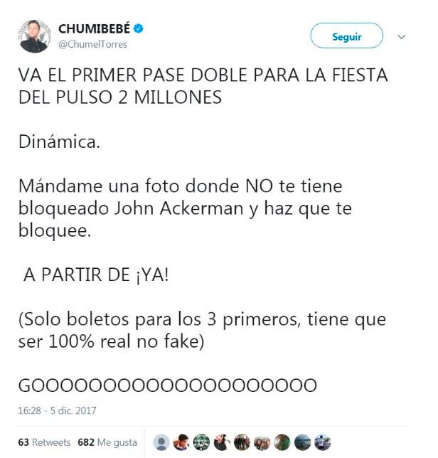 No veo a todos los seguidores de Chumel diciéndole "chairo" por juntarse con Carmen, creo que todos se infartaron con este tuit.