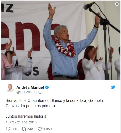@lopezobrador_@yeidckol no puedo creer que este aceptando basura de otros partidos como cuahutemoc blanco o la senadora que renuncio al pan pir que ya no le dieron nombramiento plurinominal no pues asi como quieren que uno crea en@lopezobrador_ o morenaThanks. Twitter will use this to make your timeline better. UndoUndo