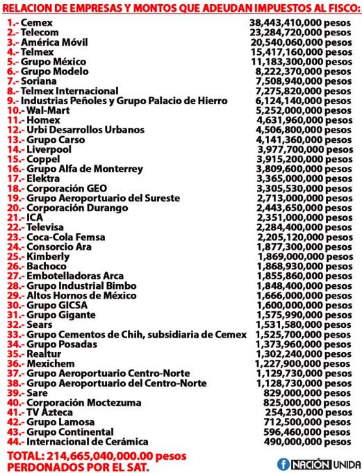 Son muchos nombres, y empresas enormes. ¿Pero realmente es capital en beneficio real de México? Creo que es una pregunta válida. Personalmente creo que solo buscan beneficio personal (y no hay nada malo en ello) el detalle es que ahorita perseguimos el bien del país en general.