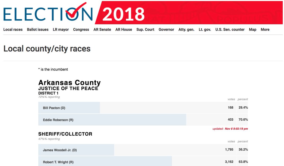 LOCAL RACES: Results from city and county contests across Arkansas. See them all here » https://www.arkansasonline.com/2018results/local/ …pic.twitter.com/h0RNJGHKcW