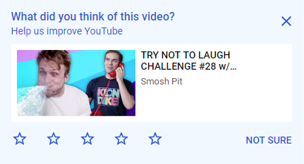 Um, @TeamYouTube, what is this? To be clear, this feedback is not in order to be constructive to @smosh, but rather to inform the site algorithm? I don't know why else it would say it's to improve YouTube, rather than the channel in question. cc: @PhillyDpic.twitter.com/jQSRCB1BIn