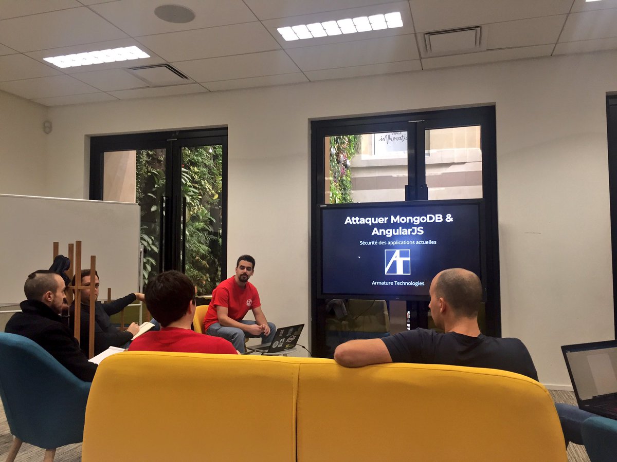 #CyberSécurité animé par notre équipe de#pentest auprès des startups du@VillageCAParis :#MongoDB et#AngularJS, quelles attaques communes sur ces technologies et comment s'en prémunir efficacement ?pic.twitter.com/dgHneohAv2
