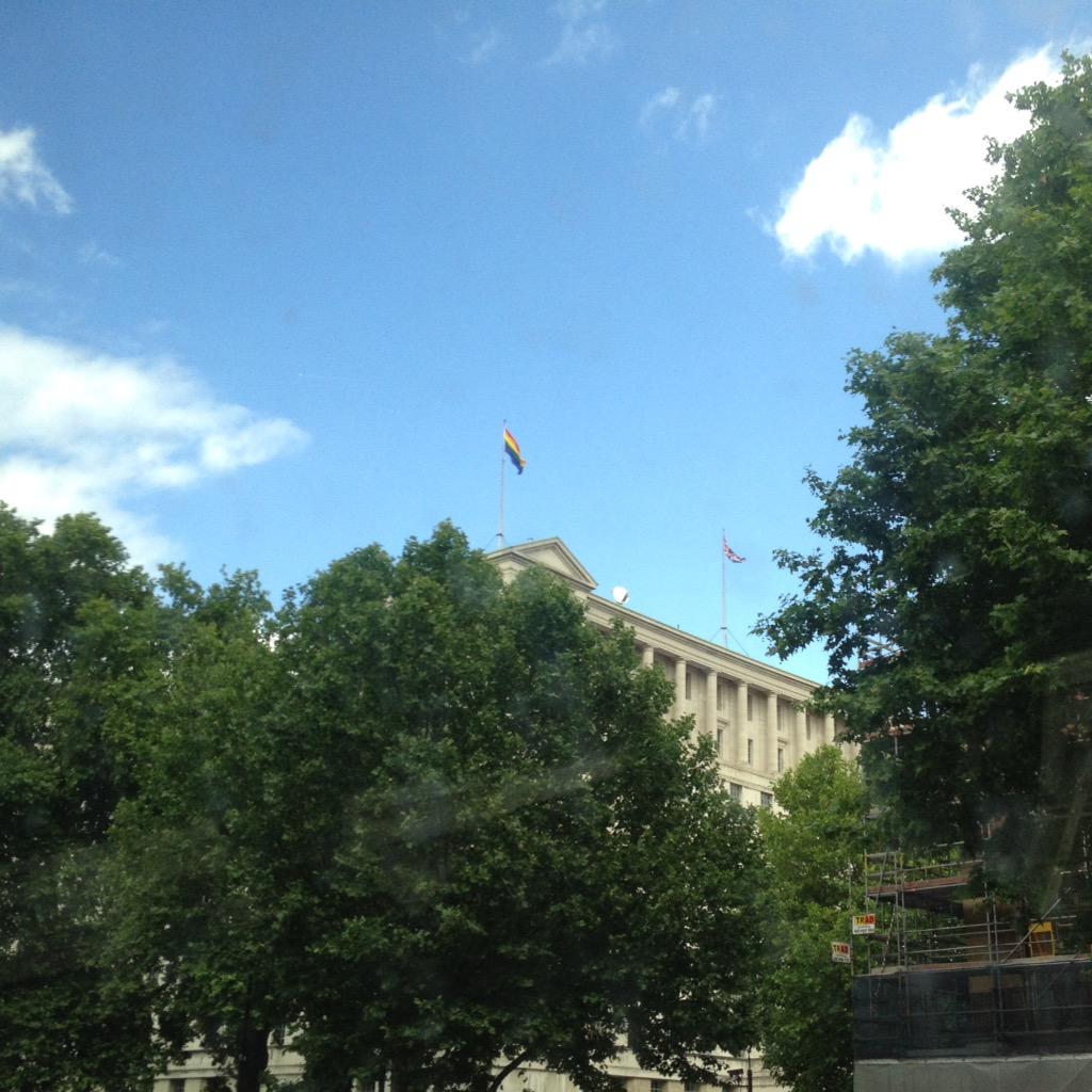 Great to see #LGBT #Pride flag flying over @DefenceHQ as we saluted the Cenotaph with @RoyalNavy_LGBT & @RAF_LGBT.pic.twitter.com/Hm9ReAM3ch
