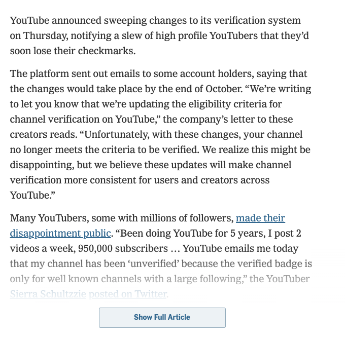 I Tweeted about this earlier, I am one of them. SGT Report got the email today, and will be UN-verified by the vipers at @TeamYouTube in October.https://twitter.com/Perpetualmaniac/status/1174857541315989504 …