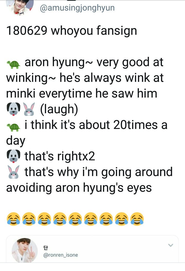 aron hyung~ very good at winking~ he's always wink at minki everytime he saw him