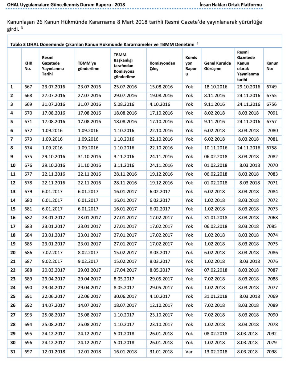 31 Emergency Decrees were approved by the Turkish Parliament and were codified as law. Thus, emergency measures have gained permanent qualification.