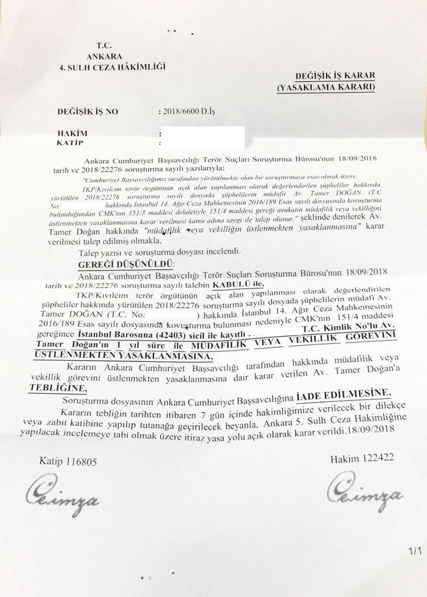 Lawyer Tamer Dogan was banned from representing Austrian journalist #MaxZirngast, and Hatice Goz and Mithatcan Turetken by an Ankara Peace Criminal Judge @IndexCensorship @article19europe @OSCE_RFoM @RSF_EECAhttps://twitter.com/chdgenelmerkez/status/1045266856611926016 …