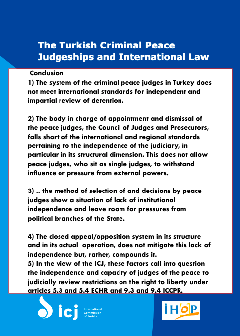 Report on Turkish Criminal Peace Judgeships and international law by @ICJ_org and @ihop_tr: 1) The system of the criminal peace judges in Turkey does not meet international standards for independent and impartial review of detention. @freejudgeseu @platformpj @yargiicinadaletpic.twitter.com/3BpGVAdYul