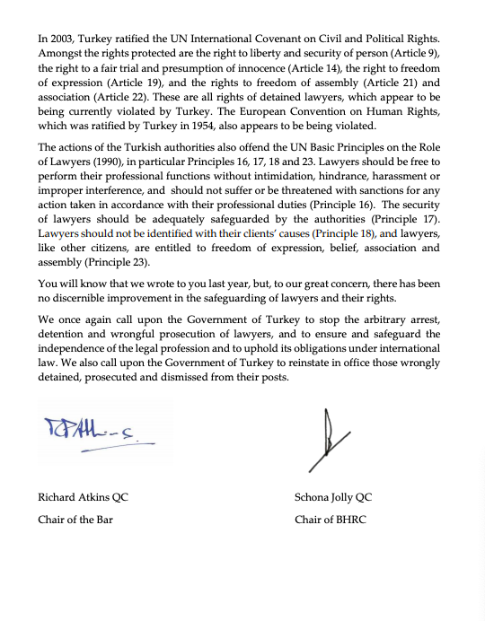 With a joint letter, @thebarcouncil & @BarHumanRights urge the Turkish Government