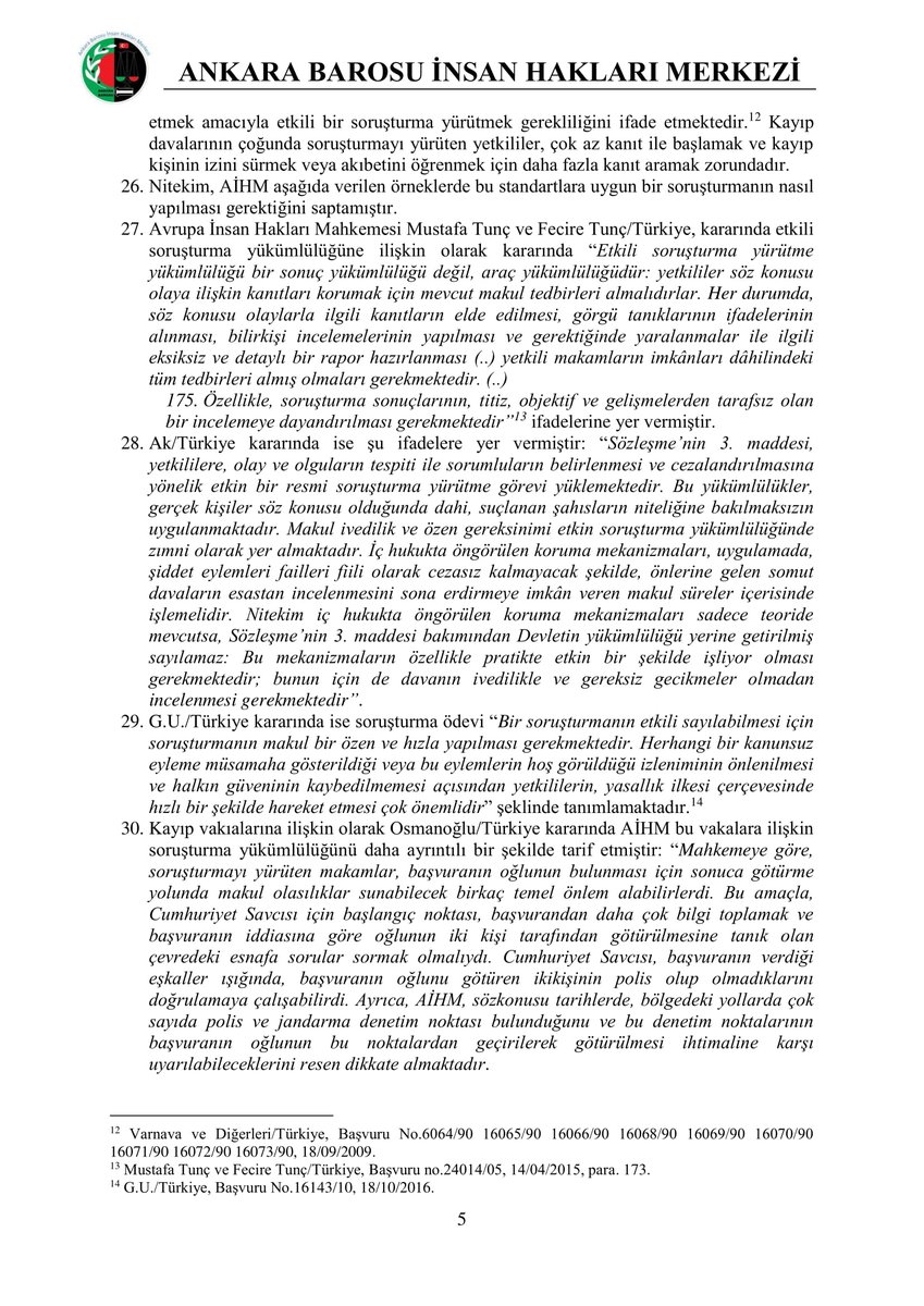 Mustafa Yılmaz'ın 19.02.2019'da siyah renkli transporter marka araca bindirilerek kimliği belirsiz kişilerce kaçırıldığı iddiası ile yapılan başvuru üzerine Ankara Barosu İnsan Hakları Merkezi tarafından düzenlenen izleme raporudur. pic.twitter.com/jgxhAc1w0L