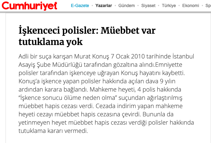 Turkish Court has convicted 3 police officers who tortured a suspect to death in 2010. However, the Court did not arrest the defendants. Oktay Kapsiz aka Lone Wolf, one of the three defendants, are still a police director in the Kurdish region. @CoE_CPT @apt_geneva #Impunitypic.twitter.com/3ugDlgM2NP