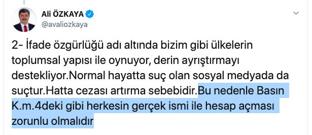 MEP and lawyer to the Turkey's Erdogan says 'Since some ignite polarization and threaten (Turkey's) social structure in the pretext of the freedom of expression, it shall be mandatory to create social media account with user's real name.' @IndexCensorship @freedomhouse @ExInt24pic.twitter.com/JQwCDqfr61