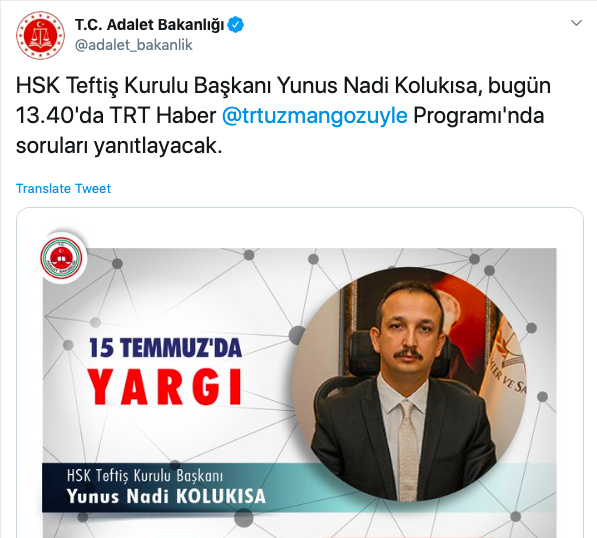 It was reported that brother (Burak Kolukisa, officer in Turkish Special Forces) of the Inspector General of the Turkish Council of Judges & Prosecutor (CJP) (Yunus Nadi Kolukisa) vigorously participated in the coup attempt. @Judges4J @CoESpokesperson @VeniceComm @JudgesSsppic.twitter.com/OCu0ubk6yA