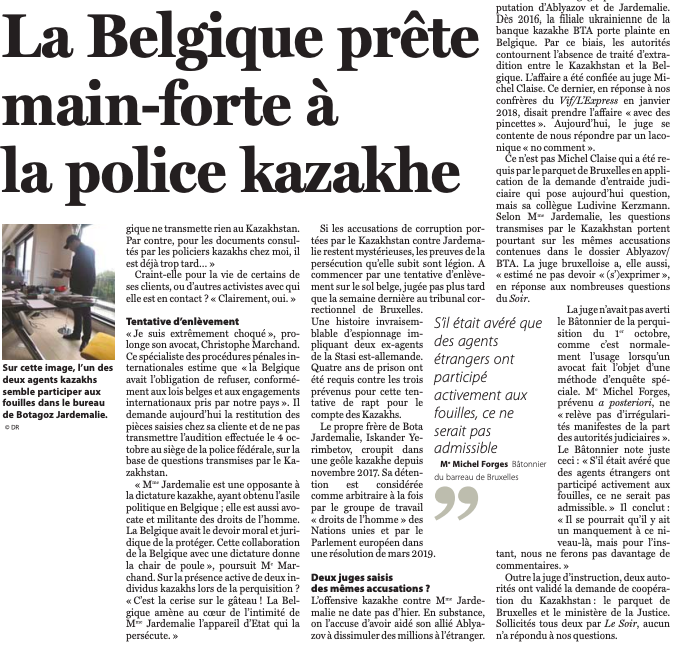 @lesoir: Belgium Gov't accepted a mutual assistance request by Kazak Gov't about a human rights lawyer. What is worse, Kazakh police participated in a search conducted in victim lawyer's house.@EndangeredL@fidh_un@ProtectLawyers@OBS_defenders@ProtectHRD_EU@AmnestyEUpic.twitter.com/YB9kf1Xys4