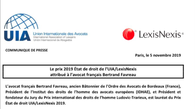 Congratulations to French Lawyer @BertrandFavreau president of @idhae4 who is the recipient of the 2019 Rule of Law Award. | via @LaurentPettitipic.twitter.com/QplP51ReWI