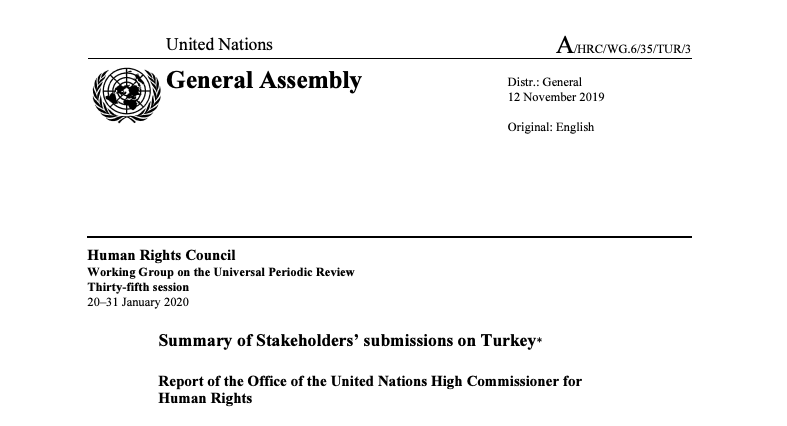 Summary report of Stakeholders’ submissions on Turkey published by the Office of the United Nations High Commissioner for Human Rights. Our submission was cited in the report. https://undocs.org/A/HRC/WG.6/35/TUR/3 …pic.twitter.com/Duq6sOaML9